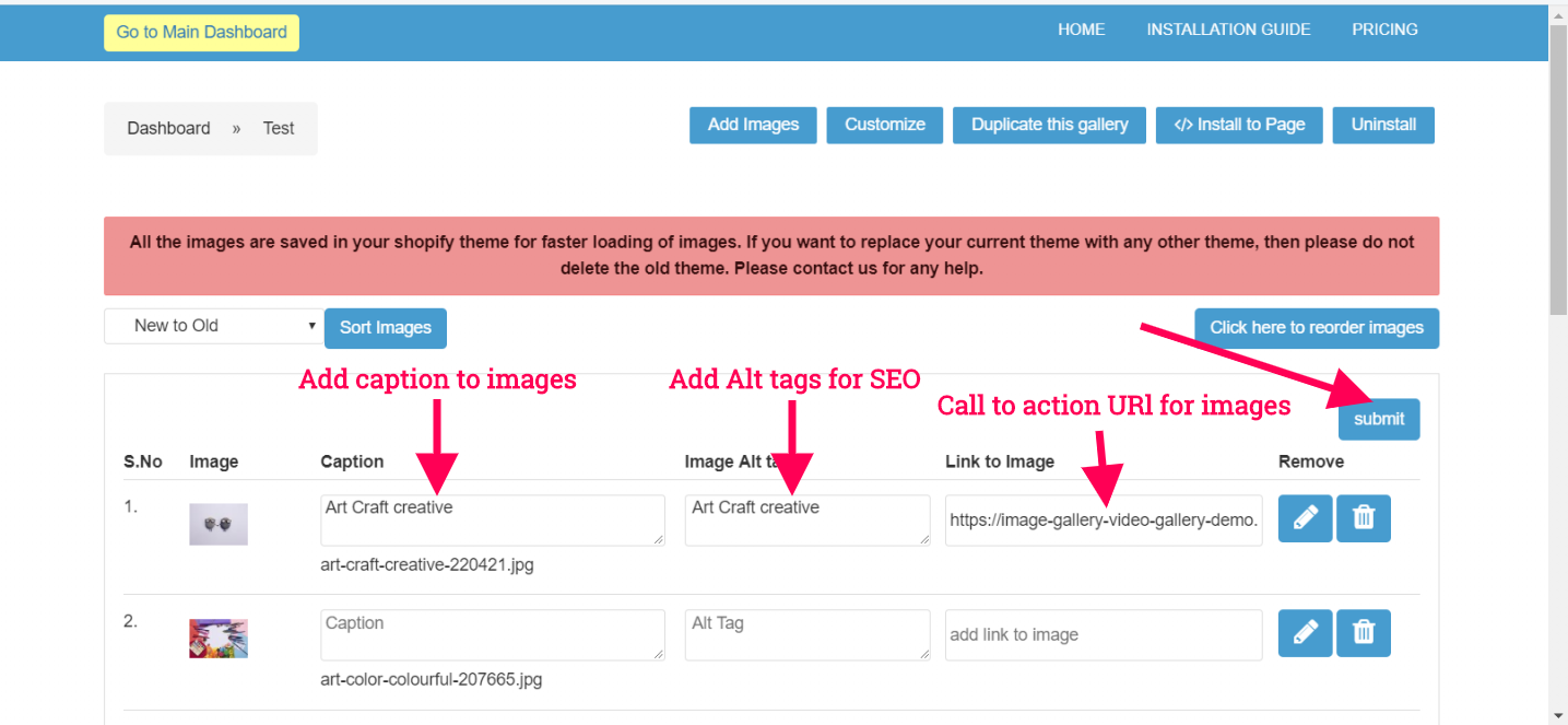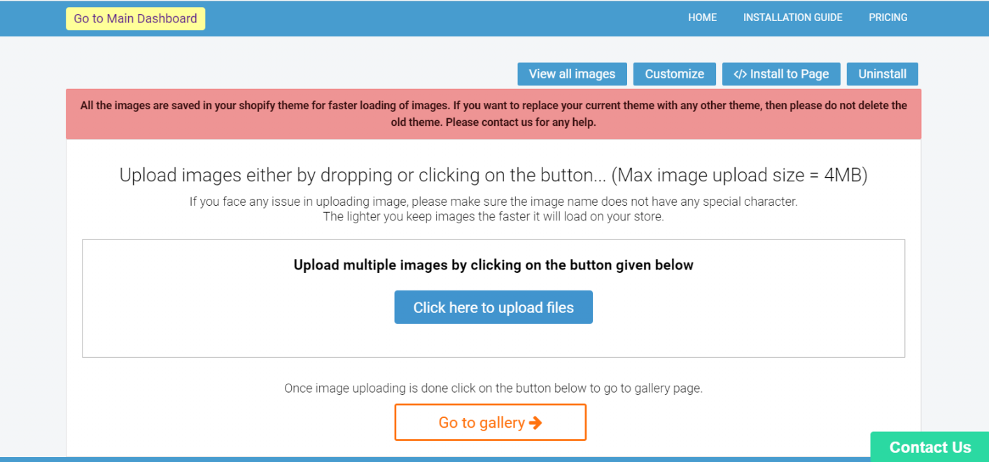 Upload images to the gallery